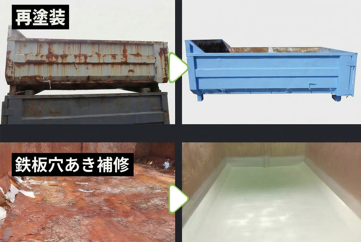 穴あき補修・部品交換・再塗装・コンテナ改造まで自社工場で迅速対応いたします。